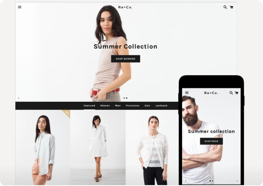 shopifyには有償・無償で多くの洗練されたデザインテーマが存在し、このテーマをベースに開発をする事で、安価に早く、売れるECサイトの構築が可能です。