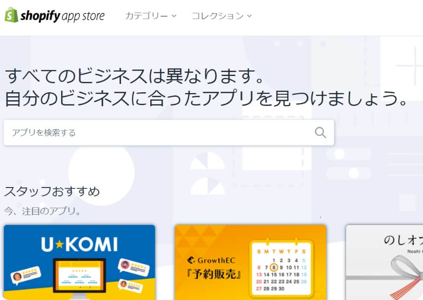 shopifyには数多くのアプリが用意されており、業務の拡大や追加機能が必要になった際に、すぐに追加機能を加える事が可能です。
