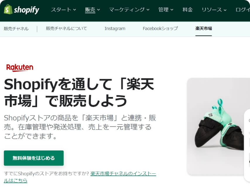 shopifyはinstagram,Facebook,Amazon,ebay,Google shopping,楽天など日本の主要な販売チャネルと連携をおこなう事が可能です。