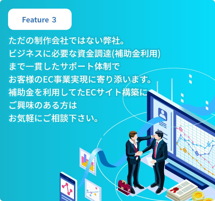 補助金を利用したECサイト制作を希望される方の申請サポート業務を行わせて頂いております。